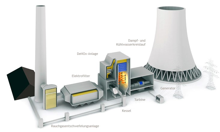 Kohlekraftwerk ,Dampfturbine undRauchgasreinigung sind hier erklärt.